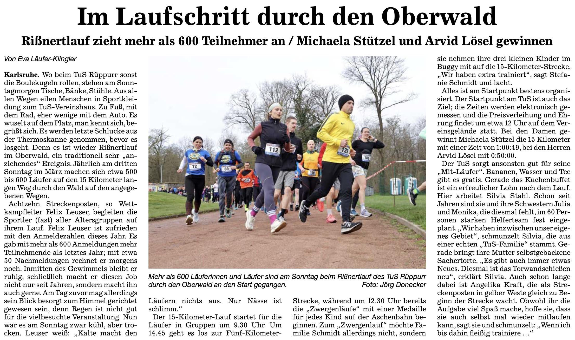 Der Rißnertlauf ist ein jährlich am dritten Sonntag im März stattfindender Lauf über 5 und 15 km durch den Karlsruher Oberwald. Direkt im Anschluss veranstaltet der TUS Rüppurr die Zwergenläufe für die Jüngsten. Die 5-km-Strecke entspricht der vom Oberwaldlauf.